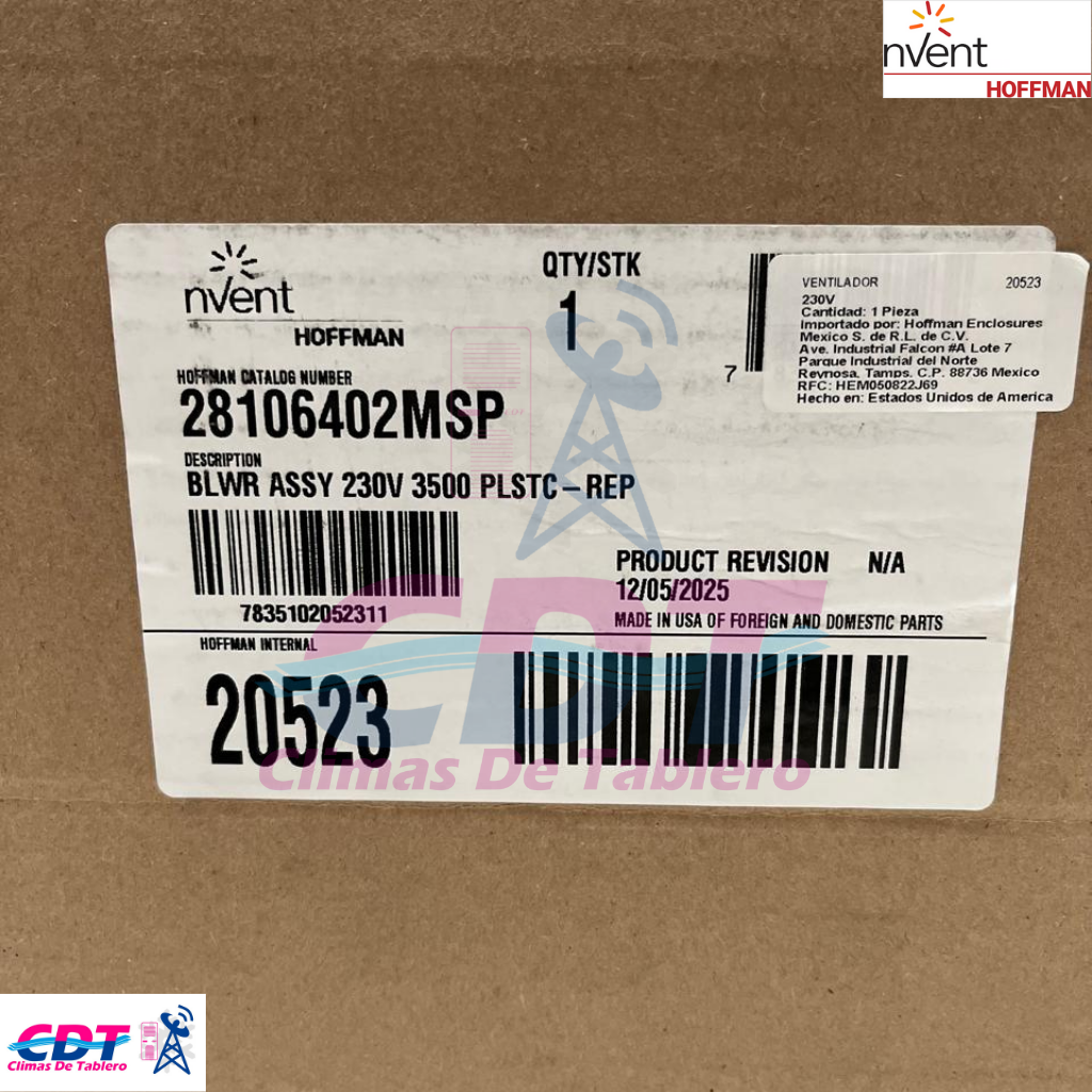 Turbina nVent HOFFMAN Modelo 28106402MSP cantidad